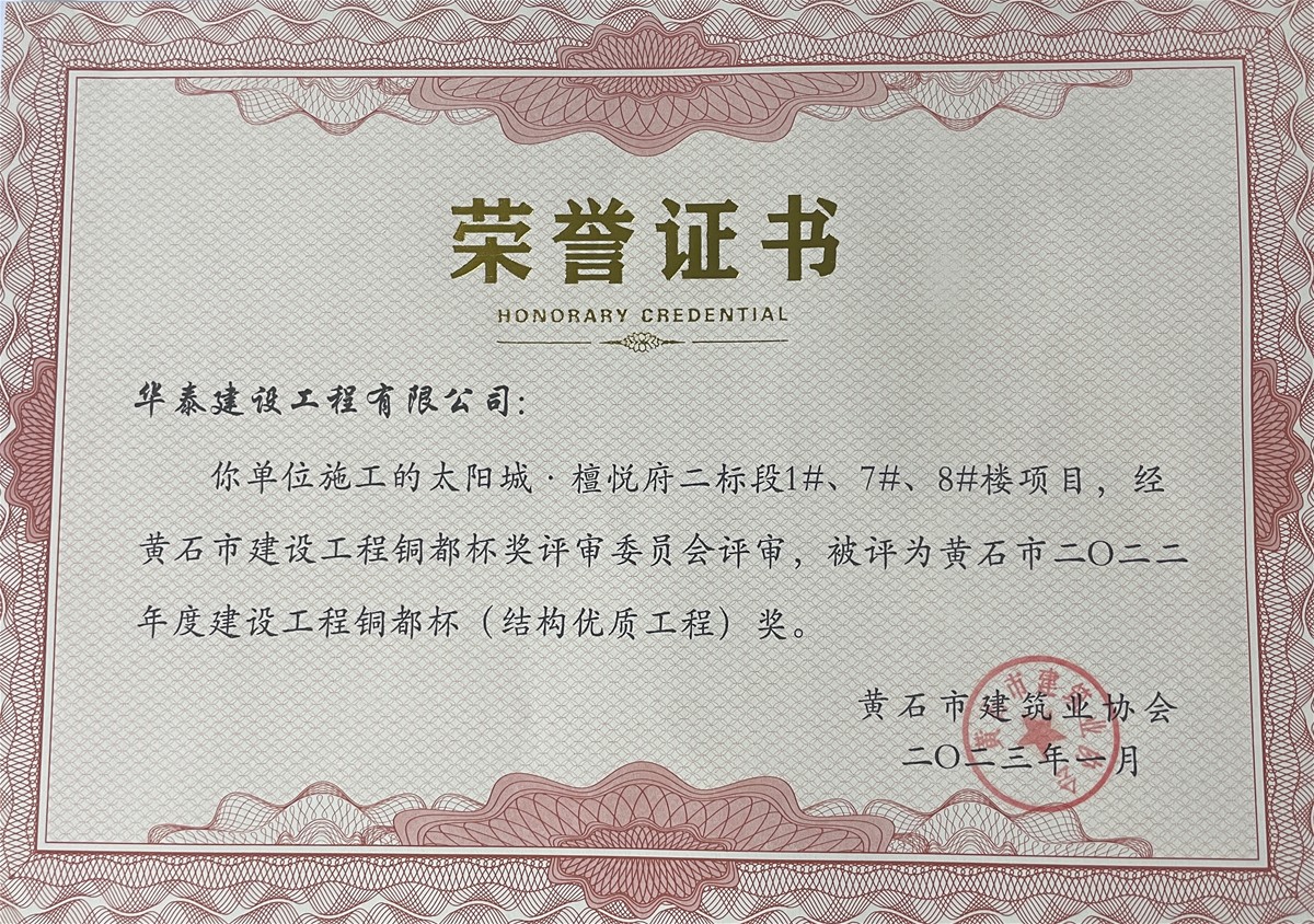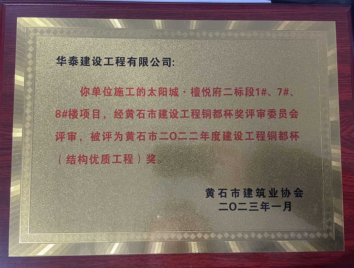 近日,在南昌市住房和城鄉建設局發布的《關于2022年下半年建設工程質量管理標準化示范工地的通告》、黃石市建筑業協會發布的《關于授予2022年度黃石市建設結構優質工程獎項目的通知》中,經各屬地工程質量監督部門推薦和專家評價,由華泰建設工程有限公司承建的“南水大廈”項目與“太陽城·檀悅府二標段1#、7#、8#樓”項目分別榮獲南昌市“2022年下半年建設工程質量管理標準化示范工地”、“黃石市2022年度建設工程銅都杯(結構優質工程)獎”。建設工程質量標準化示范工地評比是考核參建單位質量管理水平的重要標準之一,同時,建設工程銅都杯(結構優質工程獎)代表了建筑工程結構施工質量的高水平,也是精品工程的重要標志。獲此兩項殊榮,是對華泰建設項目施工水平及安全質量管理的充分肯定,彰顯了華泰建設在工程項目管理、工程品質等領域的卓越實力。